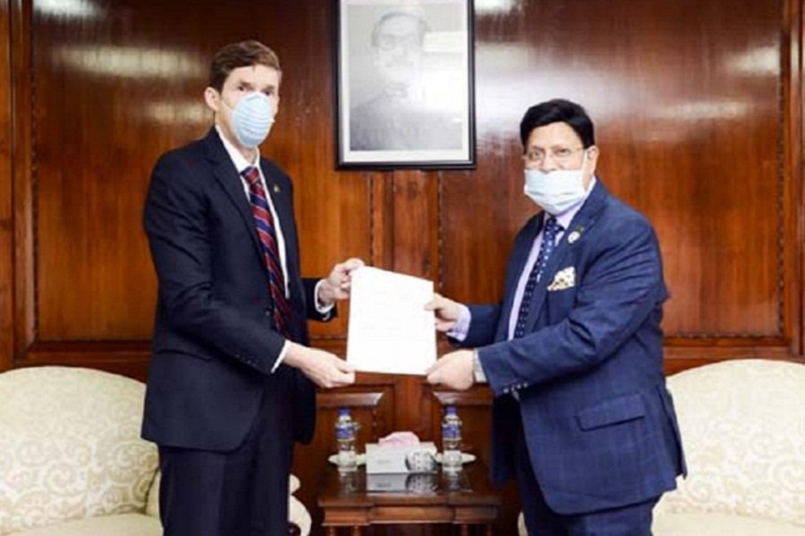 USA Ambassador to Bangladesh Earl Miller handed over the letter to Foreign Minister Momen at the foreign ministry here today.
