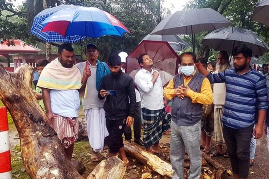 Nabinagar municipality mayor Shib Sankar Das said there are many risky dead trees like that beside Companyganj road which were not felled due to negligence of the Roads and Highway Department.