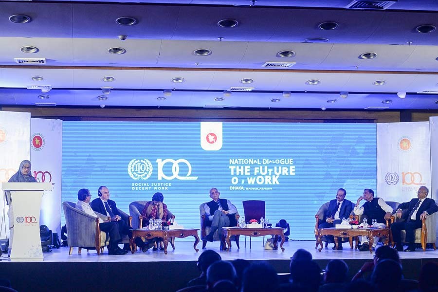 The dialogue, held at the BICC in the capital for celebrating 100 years of the ILO, was jointly organised by the Ministry of Labour and Employment and the ILO.