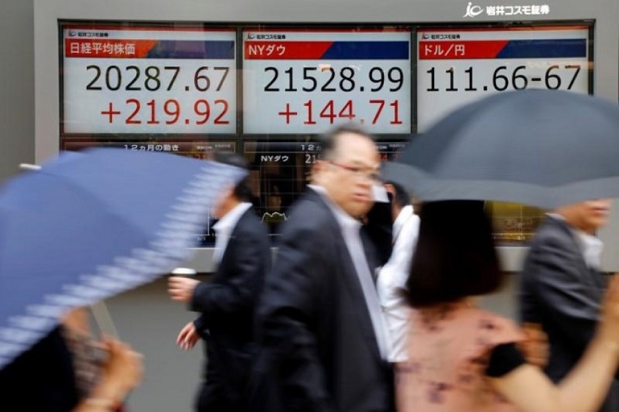 Asian stocks advanced on Monday, taking their cue from Wall Street, while the dollar moderated but retained most gains made on stronger-than-expected July jobs growth and the promise of a US tax plan that will repatriate corporate profits.