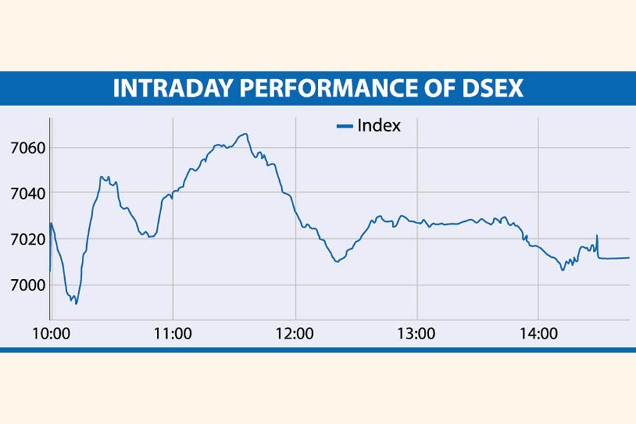 Finally, DSEX, the key index of Dhaka Stock Exchange (DSE), went up 6.10 points or 0.08 per cent to close at 7,011, after recovering more than 120 points in the previous day.