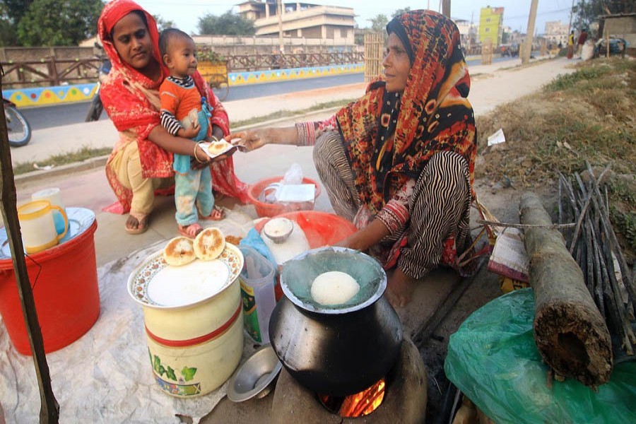 A housewife from Kantakhali, 55-year-old Bulbuli says her son, daughter and husband like vapa pitha very much but she cannot always make it at home and so often has to buy it from roadside stalls.