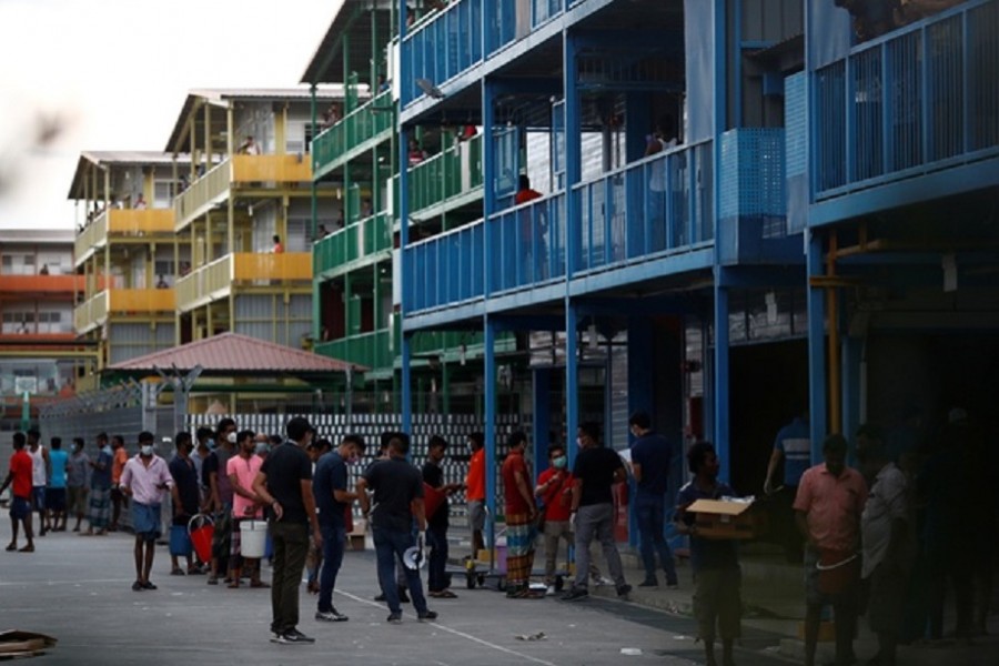 Cut off from the outside world due to the coronavirus outbreak, the workers in the dormitories had earlier expressed fear their cramped and squalid quarters are fast becoming a hotbed for infection.