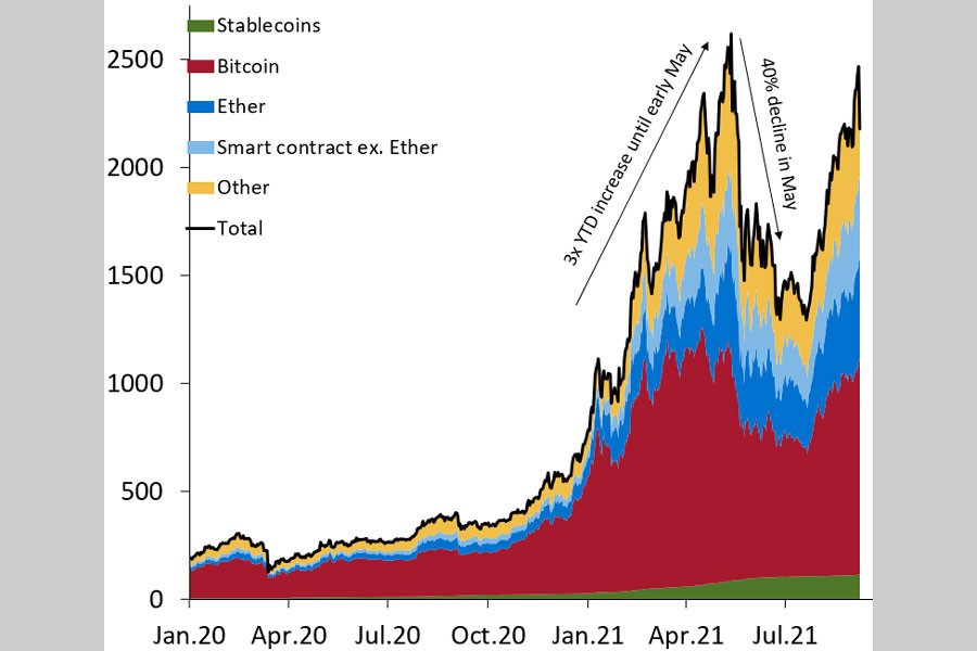 WHAT IS IT, WHAT'S AT RISK: The total market value of all the crypto assets surpassed US$2.0 trillion as of September 2021-a 10-fold increase since early 2020. An entire ecosystem is also flourishing, replete with exchanges, wallets, miners, and stable coin issuers.