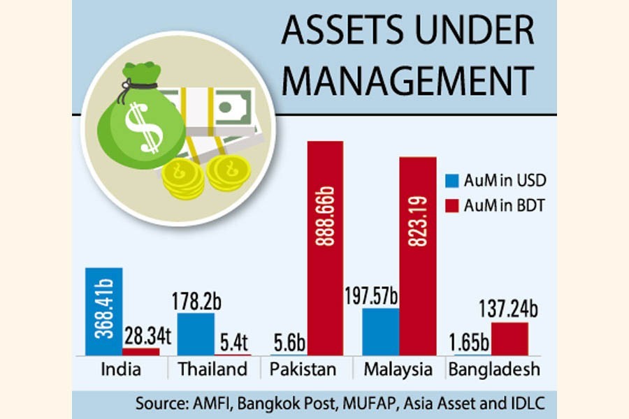 For instance, India's MF industry has outsized Bangladesh's gross domestic product (GDP), thanks to top-notch professionalism of the Indian fund managers and aggressive marketing. The GDP of Bangladesh is estimated at US$330 billion, lower than India's US$ 368.41 billion mutual-fund industry as of October 2020.
