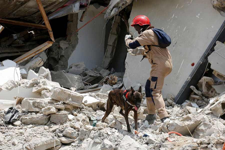 Rescuers used torches to search through the mounds of broken concrete and carried out 36 people alive, officials said. One firefighter cradled a baby in the back of an ambulance, reports Reuters.