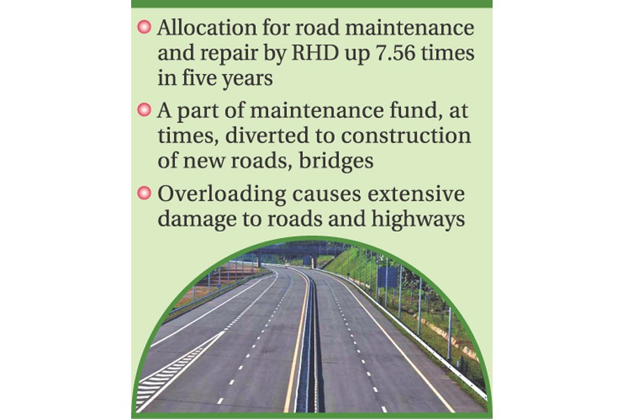 A couple of senior officials said the RHD in some cases diverts part of its funds from the annual allocations for the road maintenance to construction of roads and bridges although they could build those with money from development budget.