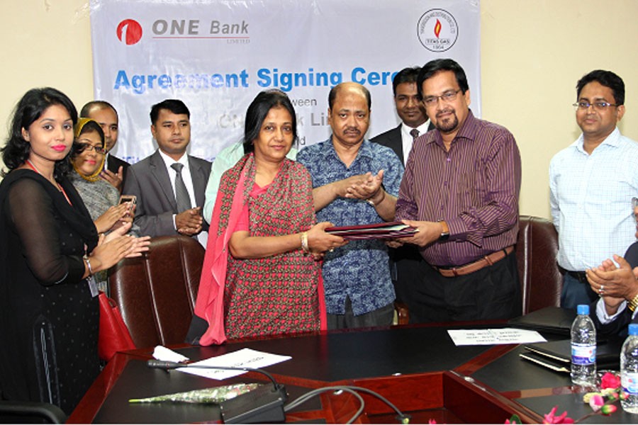Rozina Aliya Ahmed, Additional Deputy Managing Director of ONE Bank Limited and Mahmudur Rab, General Manager Administration & Company Secretary (Additional Charge) of Titas Gas Transmission and Distribution Company Limited signed the deal on Sunday, on behalf of their respective organisations.