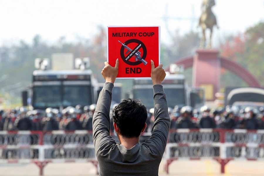 Protesters demonstrated across Myanmar again on Thursday to denounce the Feb 1 military coup and arrest of elected leader Aung San Suu Kyi, and police forcefully dispersed crowds, using water cannon in the capital and catapults in a northern town.