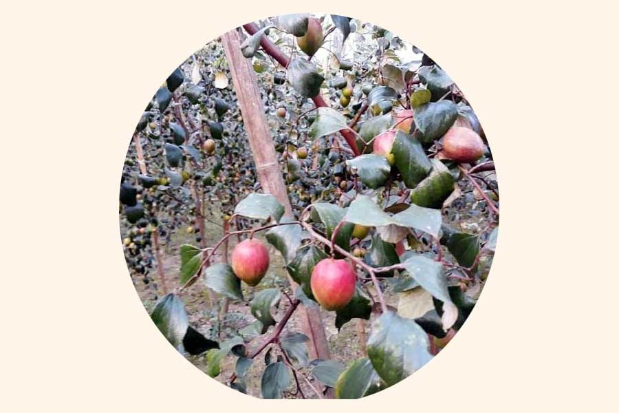 Shariatpur Department of Agricultural Extension (DAE) and local sources said Kashmiri apple jujube cultivation was brought to the country in 2017. Grower Awlad from Swarnaghosh village in Shariatpur municipal area, brought this kind of saplings to Shariatpur in 2018 from a nursery in Chuadanga.