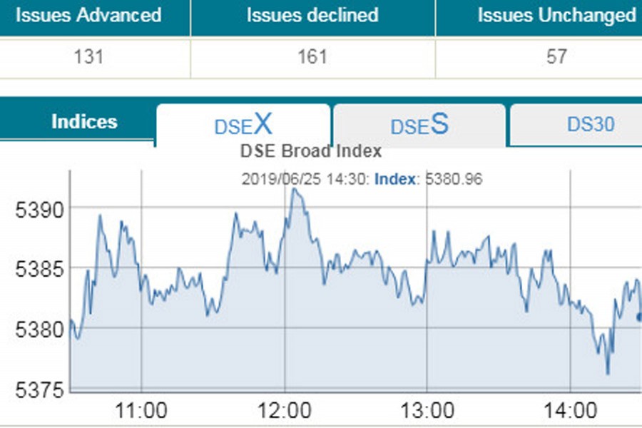 The losers took a modest lead over the gainers as out of 349 issues traded, 161 declined, 131 advanced and 57 issues remained unchanged on the DSE trading floor.