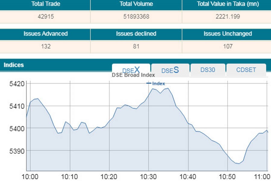 Turnover, another important indicator of the market, stood at Tk 1.75 billion within the first hour of trading at 11:00 am.