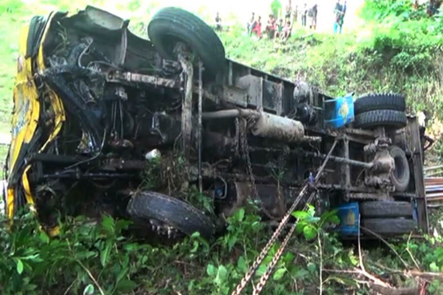 Nurul Alam, Senior Station Officer of Faridpur Fire Service & Civil Defence, said the Faridpur-bound lorry coming from Dhaka fell into a roadside ditch after its driver lost control over the steering, leaving two people dead on the spot.