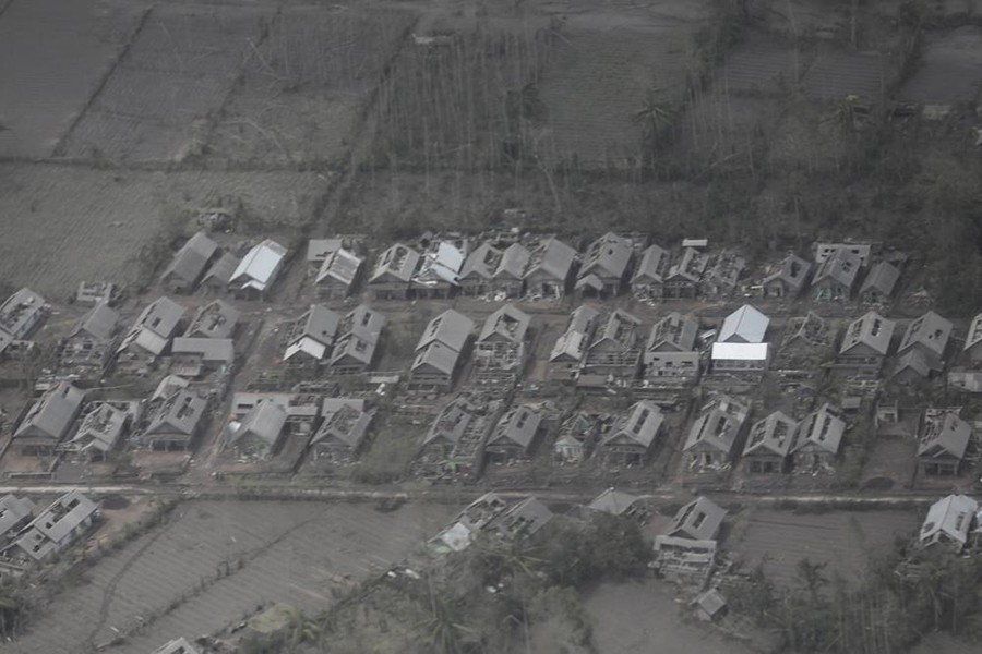 The body of the 13-year-old boy was recovered in the worst-hit village of Sumberwuluh, where houses were buried to their rooftops and cars were submerged. Crumpled roofs, charred carcasses of cattle and broken chairs covered in grey ash and soot dotted the smoldering landscape.