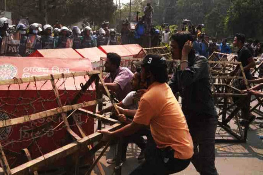 Leaders and activists of the student bodies, including the Bangladesh Chhatra Front, Chhatra Federation started their march towards the Home Ministry on Monday noon from Raju Sculpture.