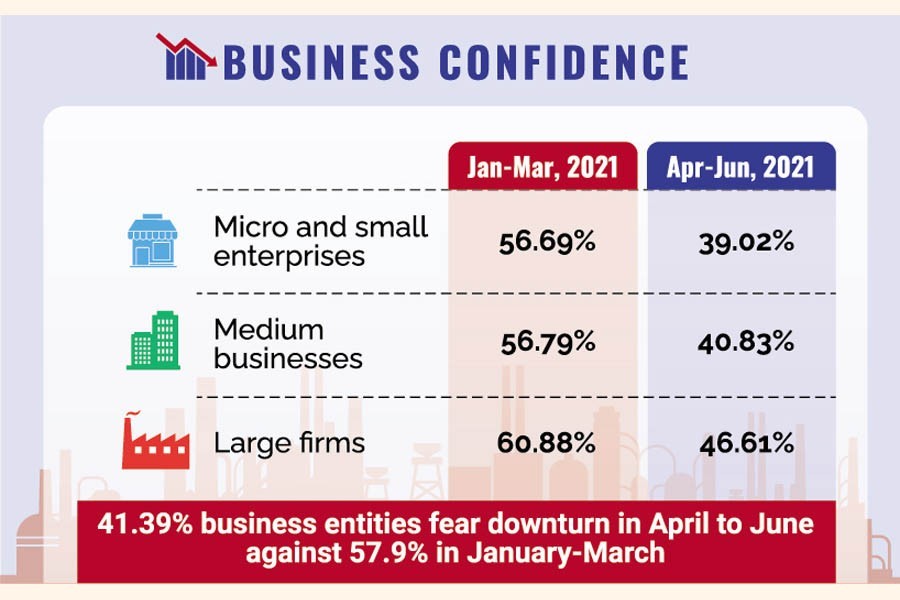 As per the Business Confidence Index (BCI), calculated in the survey, the number of confident business entities dropped to 41.39 per cent in the second quarter (April-June) of 2021 from 57.90 per cent in the previous quarter (January-March).