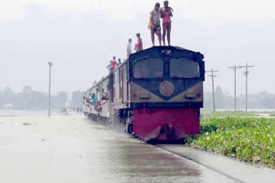 The train communication of Dhaka with the northern region of the country remained suspended since Sunday morning as a part of a rail bridge on the Pouli River in Kalihati upazila of Tangail district subsided as strong current of floodwater eroded soil from the riverbed.
