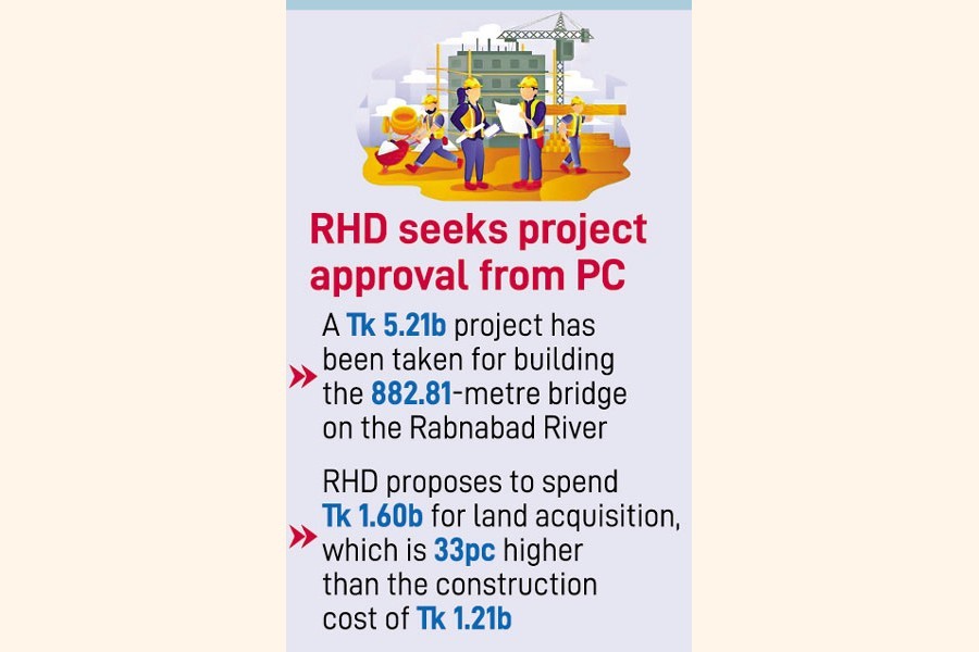 The state-run road developer has proposed to spend Tk 1.21 billion for constructing the bridge, and Tk 1.60 billion for its land acquisition, which is 33 per cent higher than the bridge construction cost.