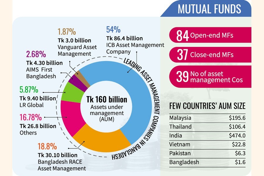 The total volume of assets under management (AUM) in India have crossed Bangladesh's gross domestic product while AUM in other countries such as Malaysia, Thailand, Vietnam and even Pakistan are much higher than Bangladesh's.