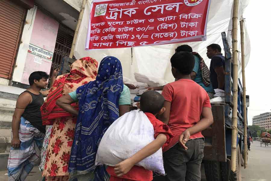 Each dealer (truck) is selling non-boiled rice and atta at Tk 30 and Tk 17 per kg respectively.