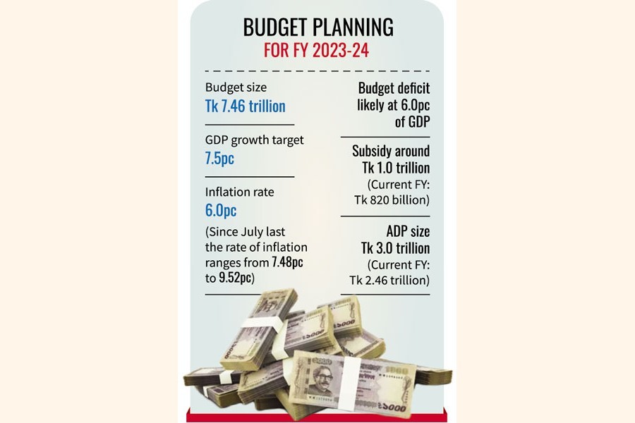 Keeping such challenges in mind and next general election in sights, the government sketched out the national budget for fiscal year 2023-24 with a total outlay of Tk 7.46 trillion and gross domestic product (GDP) growth target set at 7.5 per cent, officials said.