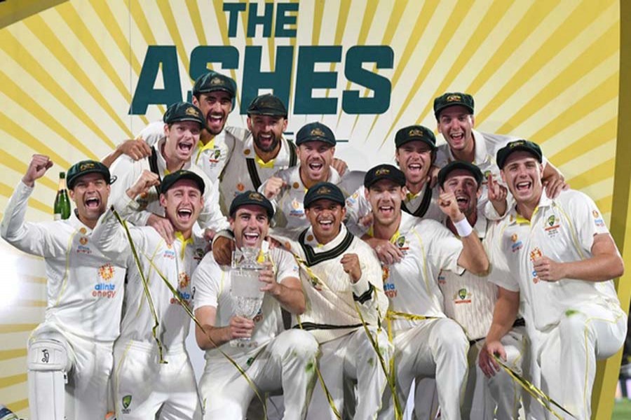 Khawaja, who played the last two matches of the five-Test series, returned to the stage and kneeled beside Cummins as the victorious side let out a roar posing for the cameras.