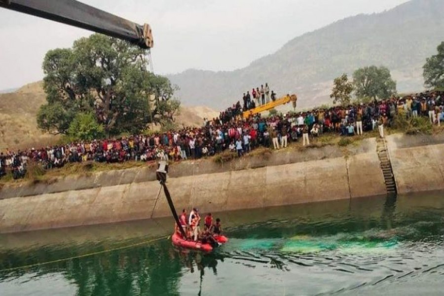 An official says an overcrowded bus has driven off a bridge and into a canal in central India, killing at least 40 people.