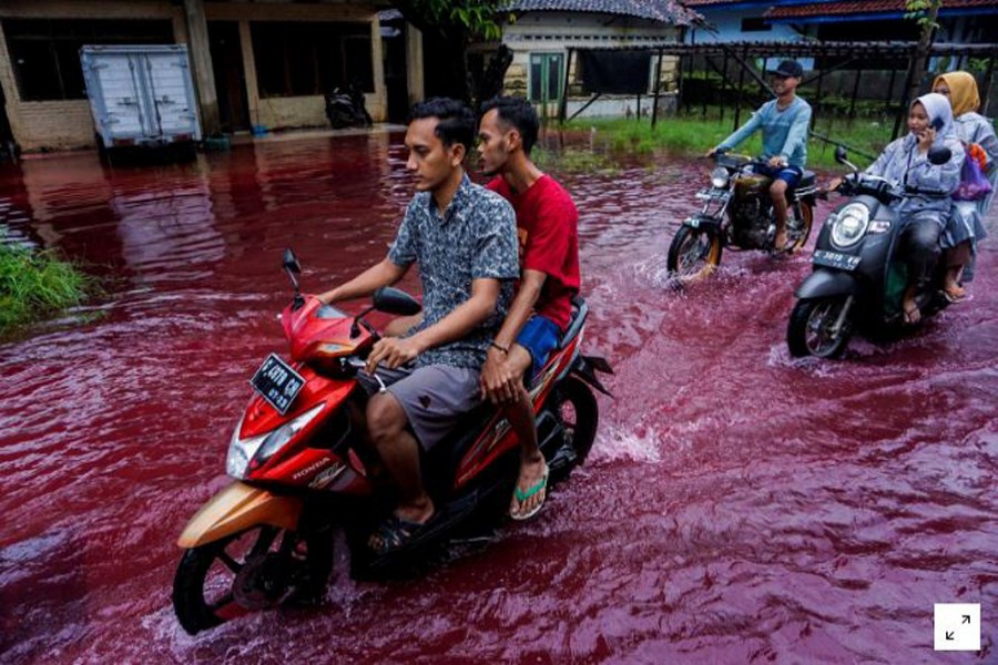 Thousands of users on Twitter shared photos and videos of the village south of Pekalongan city in Central Java being flooded by crimson-coloured water, which some social media users said reminded them of blood.