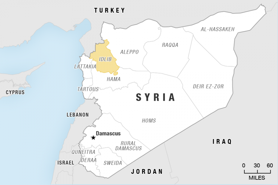 The latest wave of fighting began on April 30. It's the most serious challenge to a cease-fire brokered by Russia and Turkey last September and has set off a wave of displacement inside the rebel stronghold, home to three million people, reports AP.