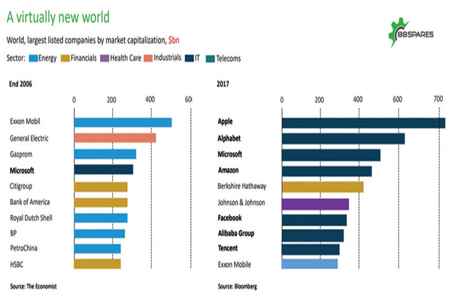 The world largest companies by market capitalisation in 2006 lost their leading position to the benefit on IT giants in 2017. The traditional industrial heavy weights, such as Exxon Mobile, General Electric, and Gazprom, started to be dwarfed by Apple, Alphabet, or Microsoft (see the figure). During the last 10 years, the knowledge industry has kicked in with a strong influence on all aspects of the world's industrial organisation. The last decade was especially characterised by turbulent times for traditional retail stores. Store-based retail companies engaged in very aggressive price strategies to compensate decreasing margins by increasing volumes, stopped expansion plans, closed shops, and cut off jobs.