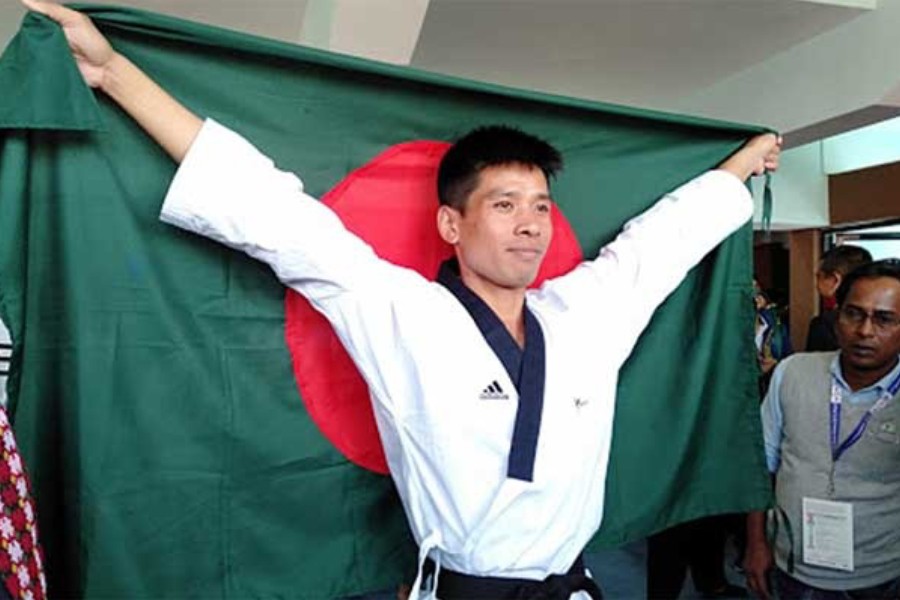 Dipu Chakma has bagged the first gold medal for Bangladesh in the Taekwondo event of the 13th South Asian Games in Nepal.