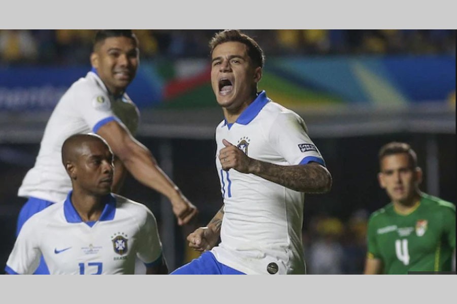 But they saw a brighter Brazil in the second half, as former Liverpool forward Coutinho, 27, scored the first goal of the tournament from the penalty spot in the 50th minute following a Bolivia handball, and added his second with a deft header three minutes later.