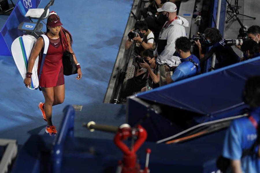 Osaka, who lit the Olympic cauldron in Friday’s opening ceremony, won her opening two matches in straight sets following a two-month mental-health break. But conditions were different Tuesday with the roof closed because it was raining outside, reports AP.