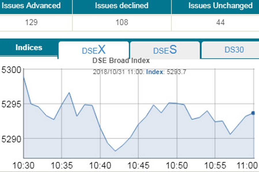Of the issues traded till then, 36 gained, 32 declined and 10 issues remained unchanged with Tk 30 million in turnover.