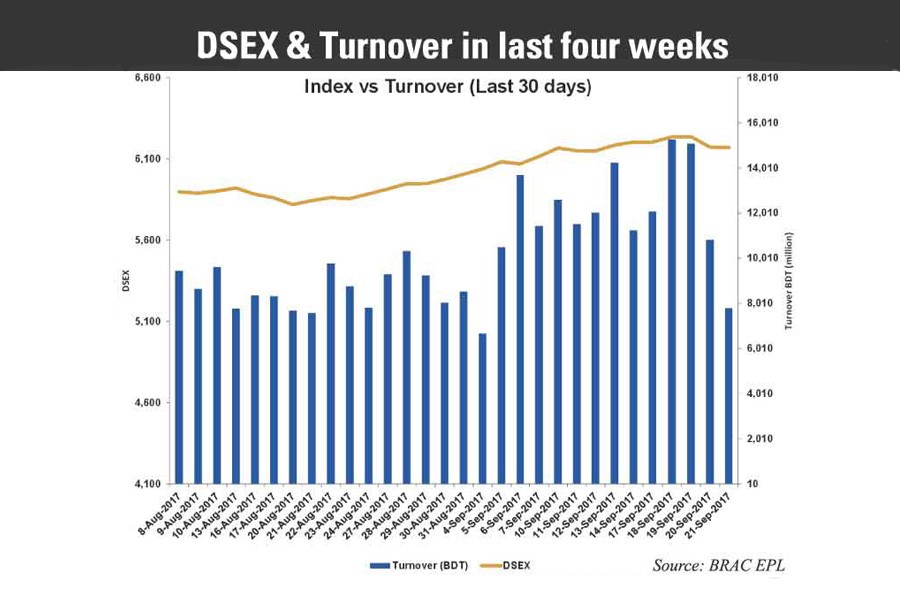 In five sessions, the DSE featured a total turnover of above Tk 61.05 billion which was 0.96 per cent less than the turnover of the previous session.