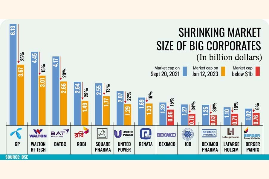 The total market equity of large-cap stocks, including Grameenphone, British American Tobacco Bangladesh (BATBC), and Square Pharmaceuticals lost 6-38 per cent in value. The three, however, could retain their status.