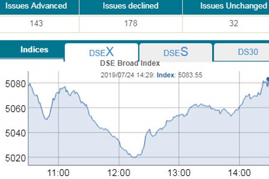 After witnessing volatility throughout the session, DSEX, the prime index of the Dhaka Stock Exchange (DSE), settled at 5,077, shedding 0.46 point over the previous day.