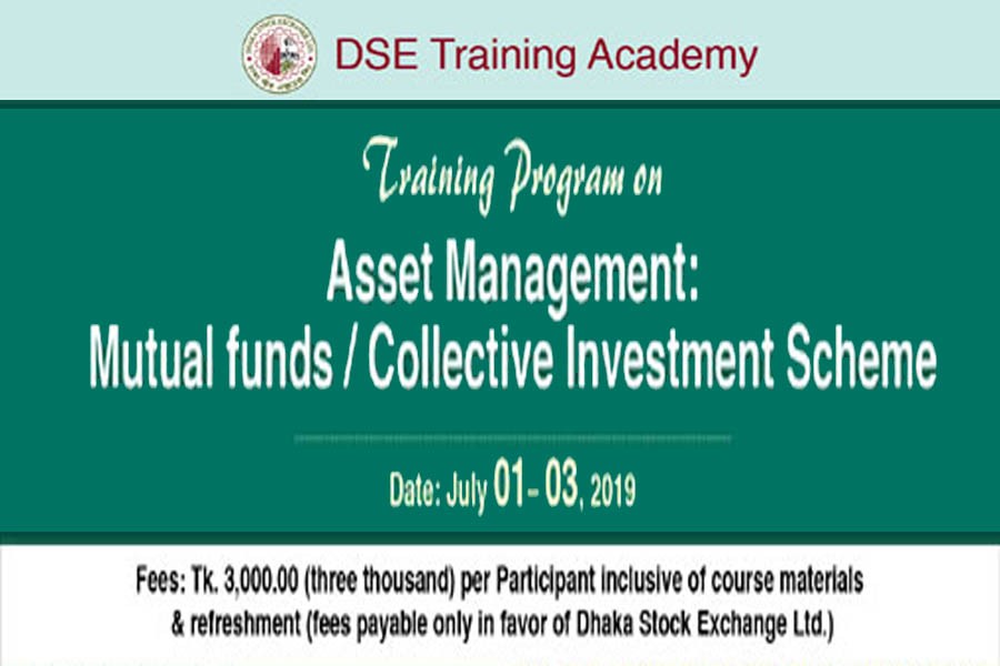The Dhaka Stock Exchange (DSE) will hold a training programme on 'Asset Management: Mutual Funds/Collective Investment Scheme' for the investors on July 01-03, according to DSE website.