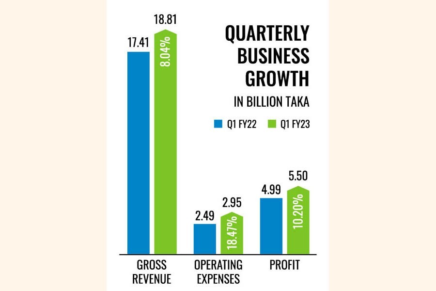 At the same time, operating expenses jumped 18.51 per cent to around Tk 2.95 billion.
