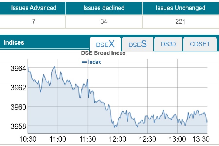 Of the issues traded, 221 remained unchanged while only 07 issues advanced and 34 declined on the DSE trading floor.