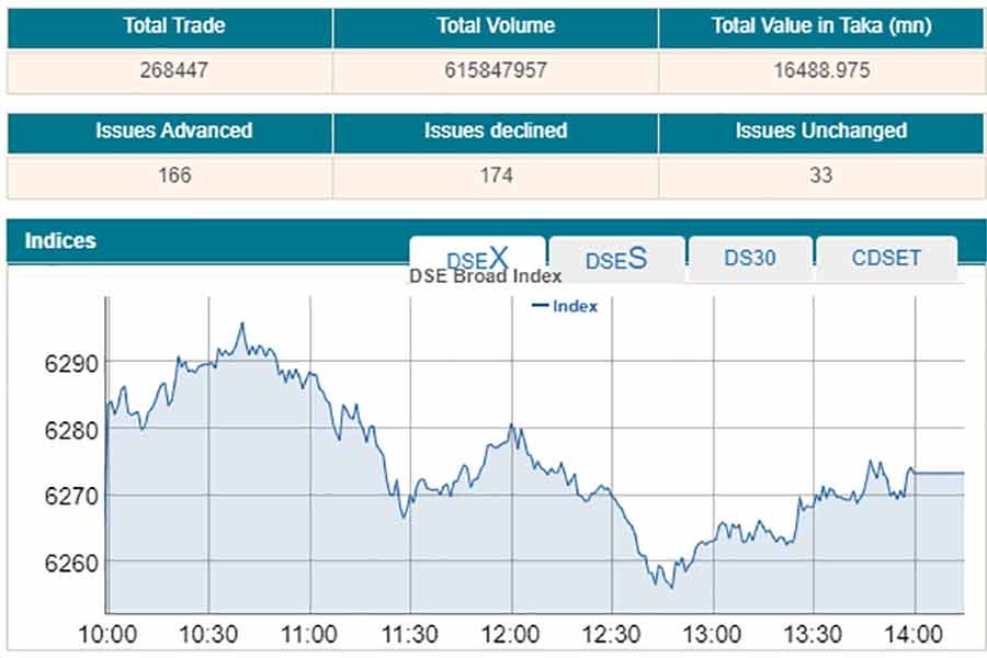 DSEX, the prime index of the DSE, went up by 7.31 points or 0.11 per cent to settle at 6,273, the highest since January 4, 2018, when the DSEX was at 6,302.