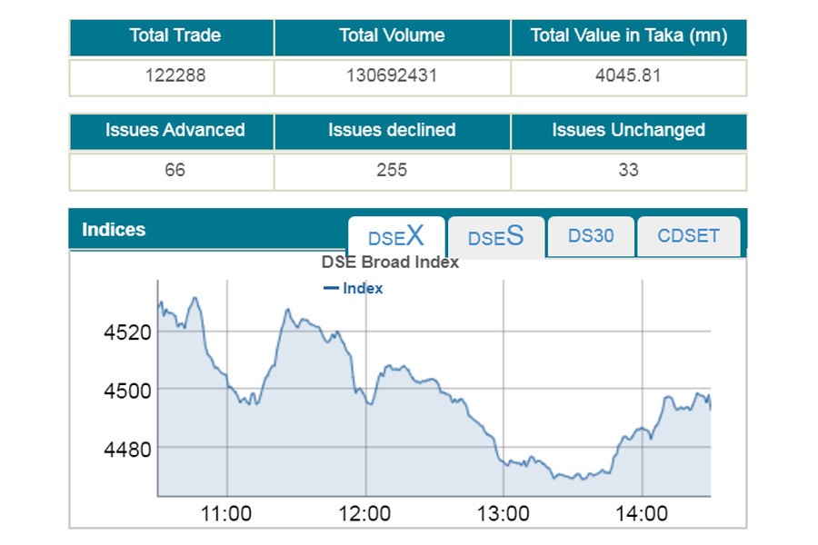 DSEX dips below 4,500-mark again