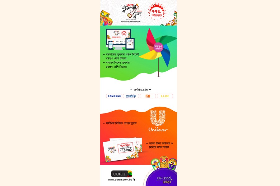 Bangladesh's e-commerce platform Daraz celebrated the 'Baishakhi mela' for the third time. The 16-day 'Baishakhi mela' started on March 30 and ended on April 14, says a press release.