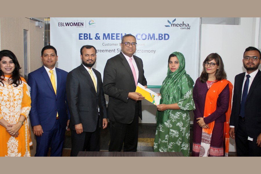 M Khorshed Anowar, Head of Retail and SME Banking of EBL and Nelufer Nazrul, Executive Director of Meeha.com.bd Limited signed an agreement to this effect at the bank’s head office in Dhaka recently, said a media release.