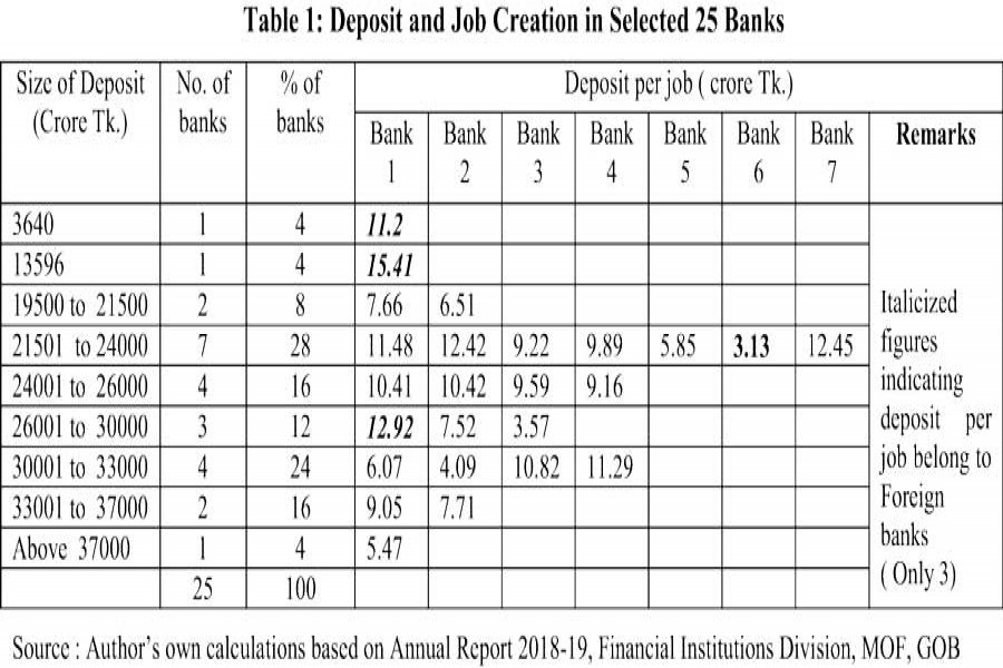 The government and the community expect that business organizations, in particular, should create as many jobs as possible for the working-age population with a view to utilising human resources of the country. Banking business is considered to be one of the most organised sub-sectors of the overall service sector. It has to focus on personalised customer services and thus needs skilled and potential manpower despite huge dependence on artificial intelligence. This article first focuses on job creation capacity and standard, and then glimpses the scenario of our banking industry's contribution towards creation of jobs. It may be mentioned that the government has specific time-based targets of job creation to be fulfilled by the private businesses or organisations in different sectors of the economy.