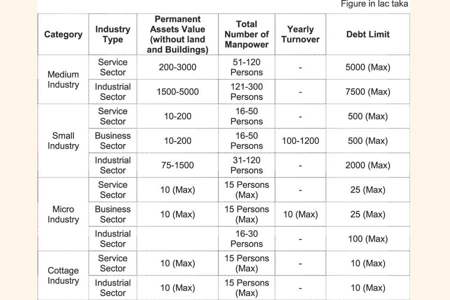 In the light of the SME and Special Programme Division Industrial Policy-2010, on June 19, 2011, the inclusion of SMEs for bank/non-bank financial institutions is given below: