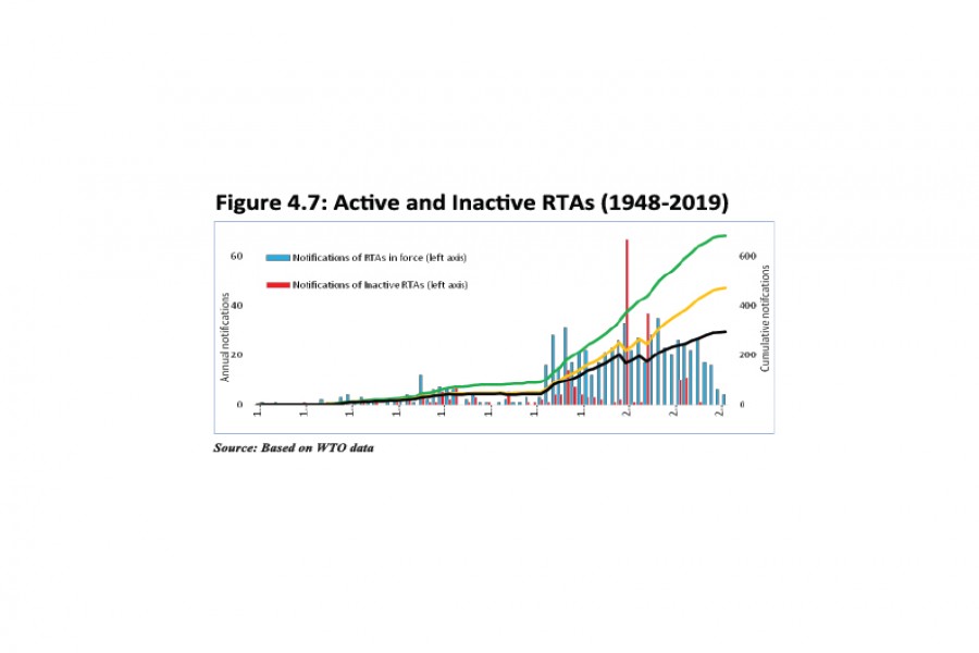 International trade has been the primary engine of facilitating income and accumulating wealth around the world in the post-WWII period. The goal of progressive trade liberalisation has been universally accepted and pursued under the singular body of the multilateral trade regime (General Agreement on Tariffs and Trade [GATT] since 1948, which became World Trade Organisation [WTO] in 1994) for nearly seven decades. During this period, trade restrictions were significantly reduced, non-tariff barriers were cut drastically and applicable tariff rates were slashed down to record low levels worldwide. Nonetheless, nearly twenty years after the WTO's establishment, trade multilateralism has reached a crossroads. With Doha Development Agenda (DDA) negotiations going on since 2001, WTO's role, relevance or competency in greater trade liberalisation and providing relevant governance are under increased scrutiny. At the same time, with proliferation and deepening of regional trading arrangements (RTAs), control over new or broader horizon of international trade rules are leaning towards individual economies. Therefore, the organisation is being sidelined and its members are showing increasingly greater reluctance in multilateral trade discussions. As LDC (Least Developed Countries) graduation approaches alongside a stalled multilateral trade regime, Bangladesh is also confronted with a challenge of expanding exports through outside multilateralism - through bilateral and regional trade negotiations.