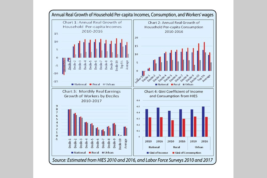 The findings support, quite robustly, the picture of a fast-growing Bangladeshi economy, where growth has impacted positively most sections of the population, except for the poorest 10 per cent of households.