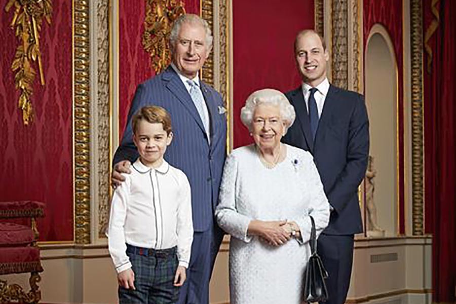 Buckingham Palace, the London residence and administrative headquarters of the monarch of the United Kingdom, has issued a new photographic portrait of Queen Elizabeth, her son Prince Charles, her grandson Prince William and her great-grandson Prince George to mark the start of a new decade.