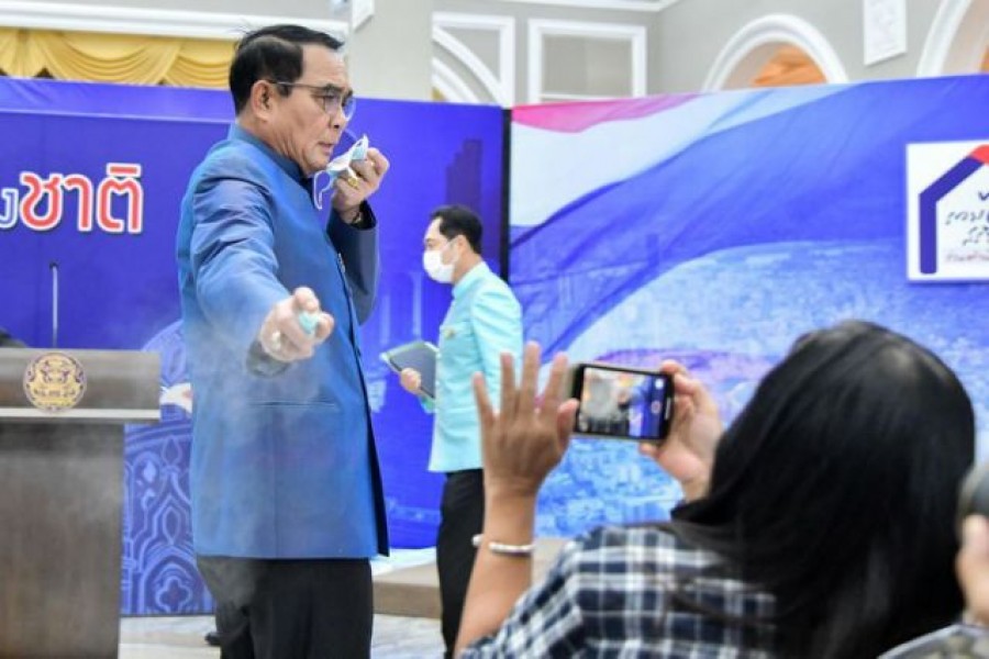 Thai Prime Minister Prayuth Chan-ocha left reporters stunned and amused on Tuesday when he interrupted his own news conference to spray them with hand sanitiser in a bid to dodge tough questions.